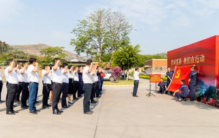 現(xiàn)場參觀結(jié)束后,舉行“重溫入黨誓詞”活動,全體黨員鏗鏘有力的宣誓聲響徹全場,大家以昂揚的姿態(tài)表達著為黨的事業(yè)奮斗終身的堅定信念,在莊嚴肅穆的氛圍中,再一次接受心靈的洗禮。