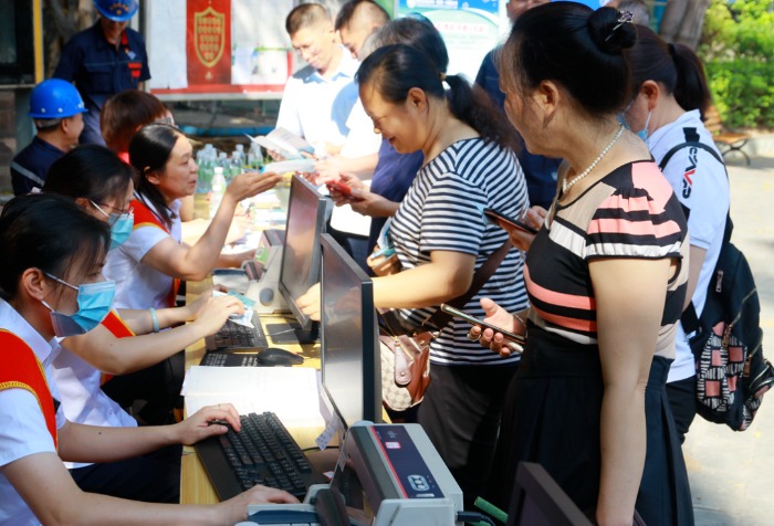 上午8時(shí),設(shè)置在竹湖園廣場(chǎng)的“520”便民服務(wù)點(diǎn),熱鬧不已,炳草崗水廠、怡康飲用水有限公司共產(chǎn)黨員服務(wù)隊(duì)、青年志愿者服務(wù)隊(duì)的隊(duì)員們,禮貌熱情地向群眾介紹集團(tuán)公司“520”服務(wù)品牌建設(shè)理念,發(fā)放“520”民生服務(wù)承諾、現(xiàn)行水價(jià)政策、用水節(jié)水常識(shí)等宣傳資料,對(duì)群眾關(guān)心的水質(zhì)、水壓、抄表、收費(fèi)等問題進(jìn)行耐心細(xì)致的逐一解答。