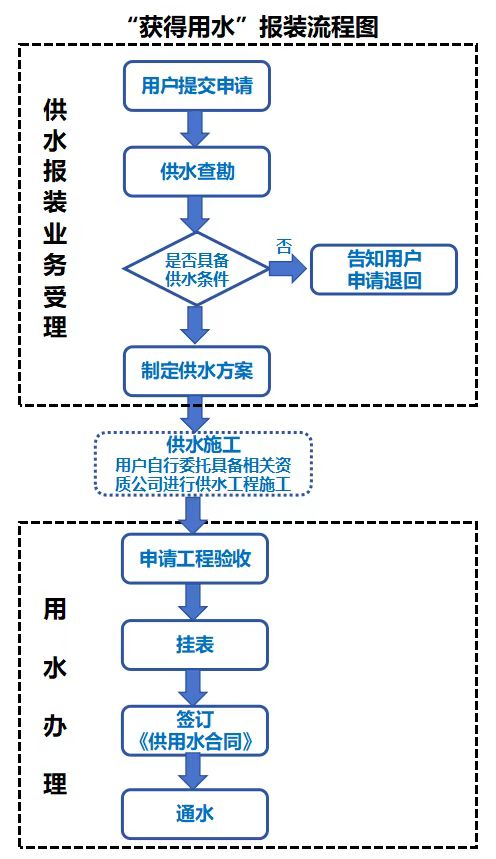 (二)用水辦理(1天):工程驗(yàn)收、掛表、簽訂《供用水合同》、通水。